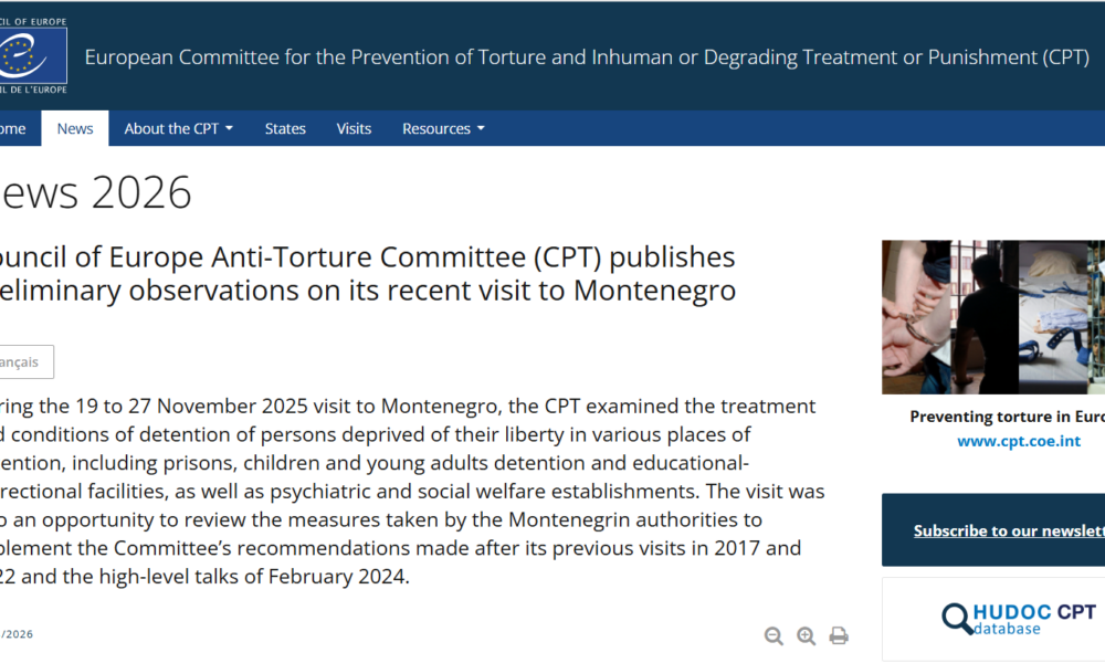 The Council of Europe has released preliminary observations regarding the treatment of detainees in Montenegro, following a visit conducted by the Committee for the Prevention of...
