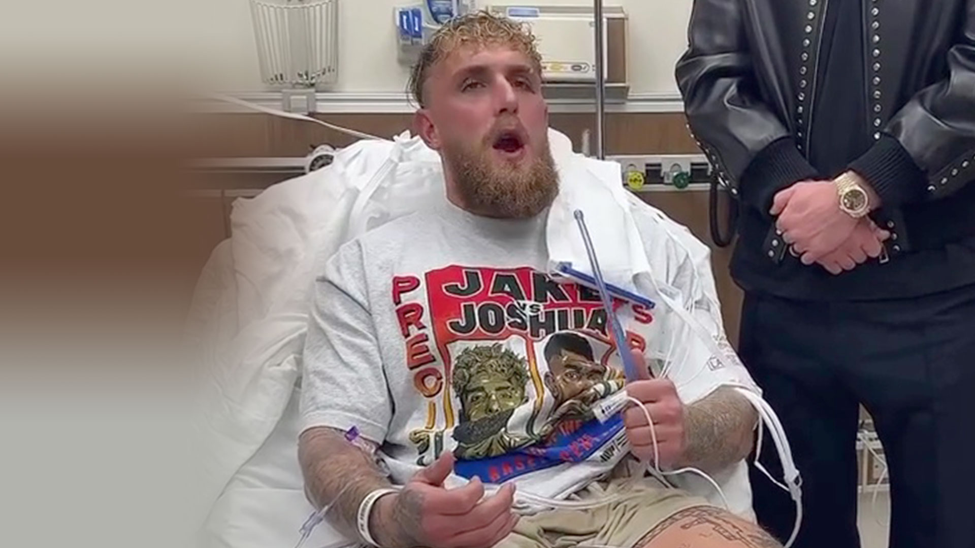 Following the fight, Paul revealed that he suspected he had a broken jaw. In the early hours of Saturday morning, he confirmed his injuries through an Instagram post, where he was seen lying in a hospital bed wearing a “Jake vs Joshua” t-shirt, shorts, and white Nike socks. He was connected to various medical equipment as doctors monitored his condition.